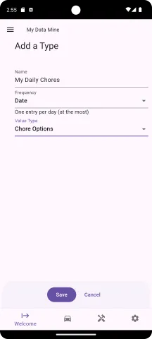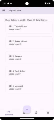 Going back to the "Manage your Data Mine Types" you can see the new "My Daily Chores" type added.