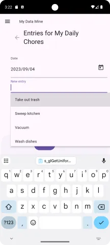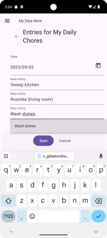 In our case, Chores are dynamic options, and since we didn't pre-populate our list of options, we will need to add new options as we go. The drop down list will show a blank list of options initially, but as you add new entries, this list will be populated with values used in previous entries.
